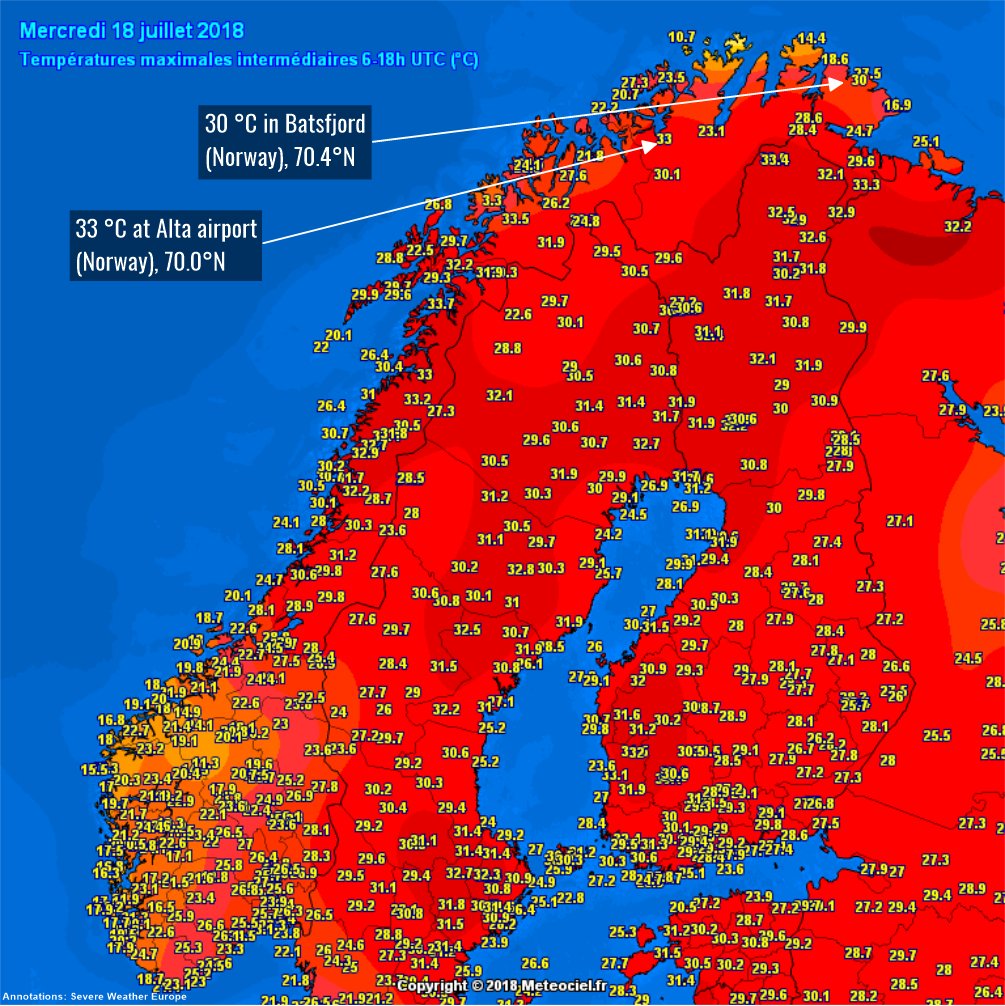 Exceptionally hot weather way north in the Arctic circle! Northern Europe getting the summer heat wave of a lifetime! http://www.severe-weather.eu/news/exceptionally-hot-day-in-northern-europe-temperatures-well-over-30-c-all-the-way-to-the-extreme-north-of-norway-arctic-circle-july-18-2018/ …pic.twitter.com/hxbWdtVSZm