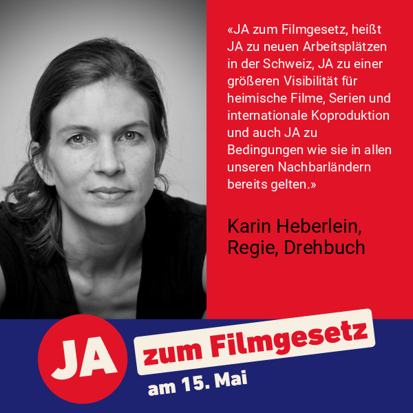 Für Regisseurin #KarinHeberlein (#SamiJoeundichFilm) braucht es ein#JAzumFilmgesetz: für größere Visibilität für heimische Filme, Serien & internationale Koproduktion sowie Arbeitsbedingungen wie in allen unseren Nachbarländern.@abrakadabrafilm#lexnetflix#CHvote#abst22pic.twitter.com/KLM5YWCbA0