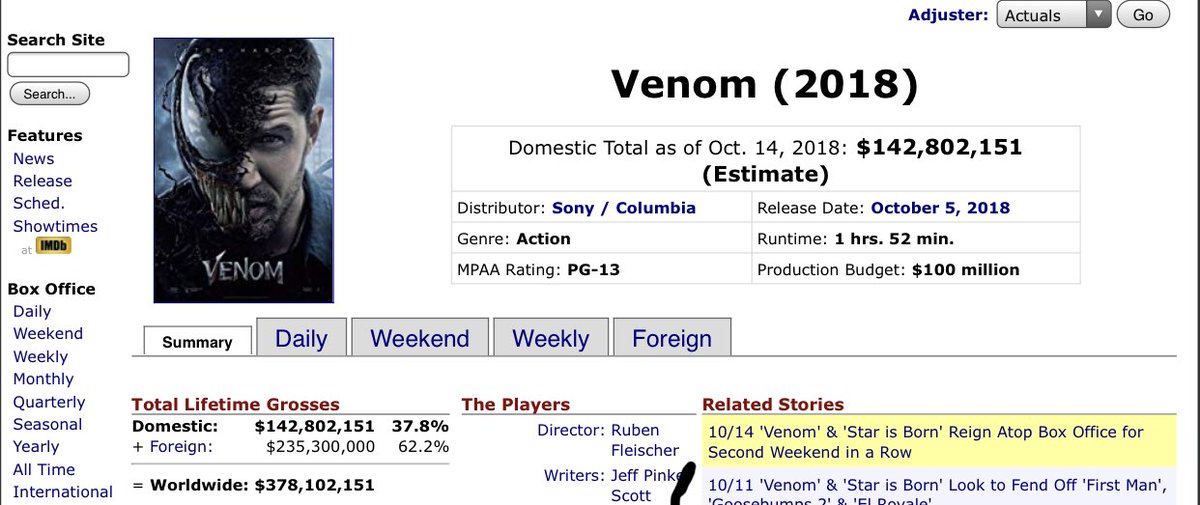 'Venom' Becomes Sony's Highest-Grossing Movie in Russiahttps://www.hollywoodreporter.com/heat-vision/venom-is-sonys-highest-grossing-movie-russia-1152387?utm_source=dlvr.it&utm_medium=twitter …