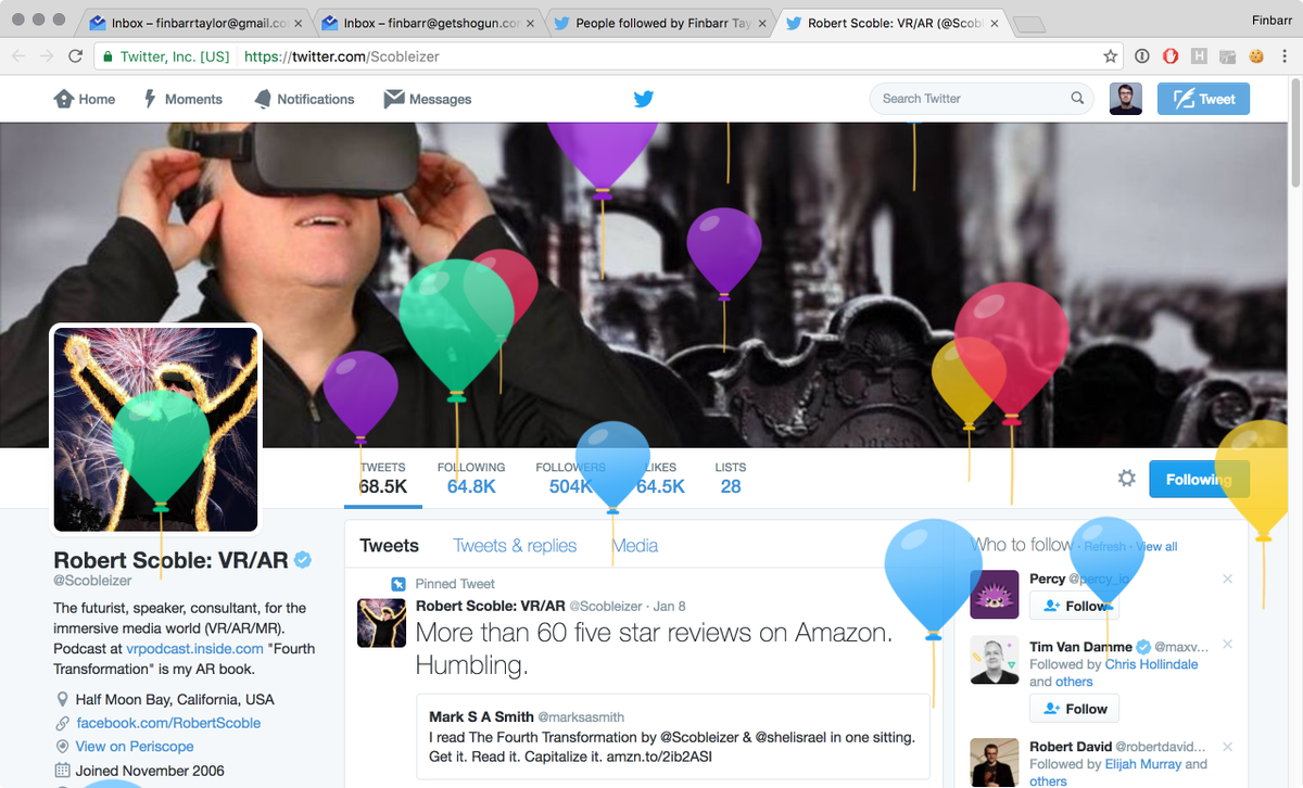 @twitter does balloons on your birthday. Happy birthday@Scobleizerpic.twitter.com/kMwe4XIP6s