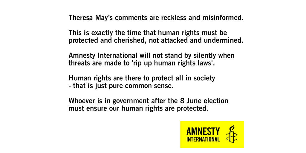 Following Theresa May's reckless attack on our human rights, we explain why they must always be protected → http://amn.st/60128lRIQ pic.twitter.com/IOSk2yXntk