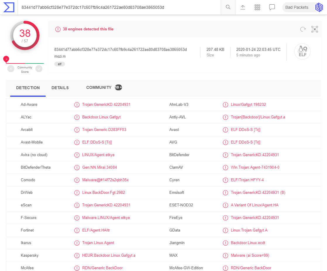 #Cybersecurity#Alert#Active#DDoS#malware payload detected: http://121.226.187.136:53428/Mozi.m Exploit attempt#IPSource 121.226.187.136