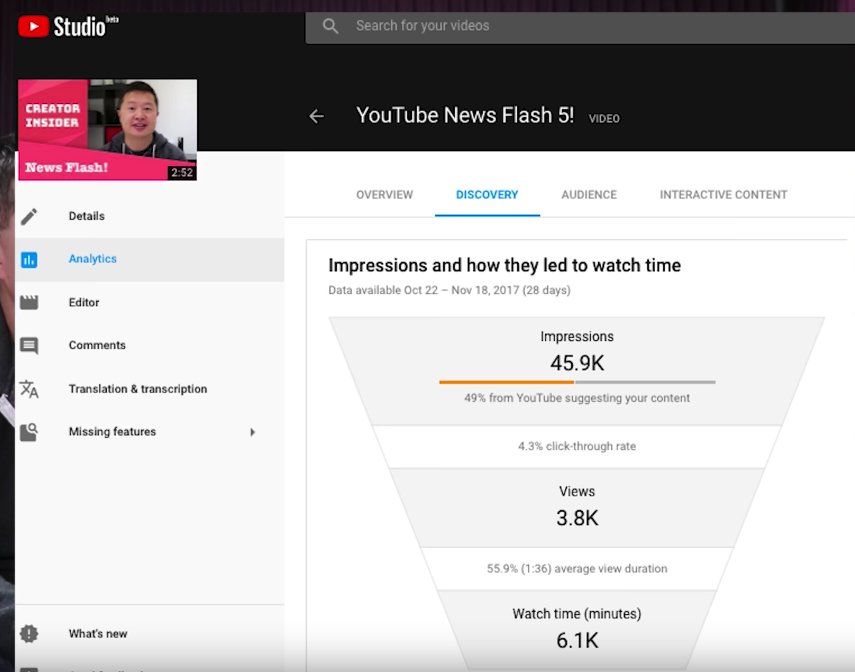 I'm so happy with @YouTube right now cuz they are rolling out Impression & Click-Thru Rate data! Great work @TeamYouTube & @YTCreators This is going to be incredibly helpful to creators.pic.twitter.com/jbRQQrnGSM