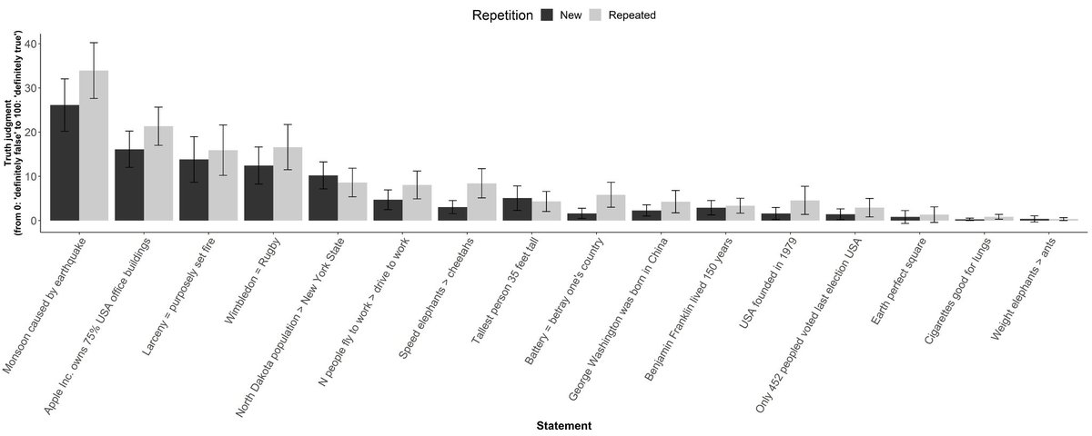 found repeating obviously false statements just 5 times increased their perceived truth, because they seem familiar. https://twitter.com/opatcorneille/status/1409471243473010690 …pic.twitter.com/IrpqVgPylj