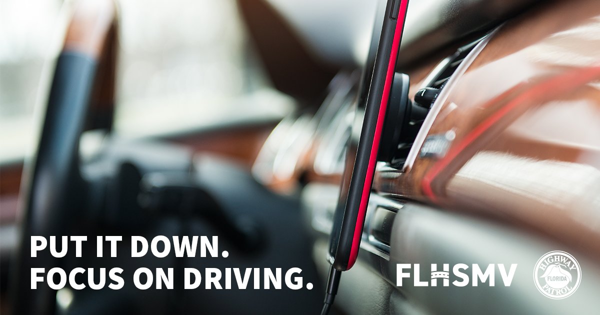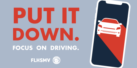 This April during Distracted Driving Awareness Month, FLHSMV is reminding motorists to Put It Down. Avoid distractions – such as your phone – that take your mind off driving and your focus away from the road. Put it down.