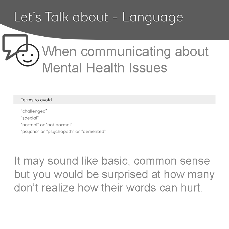 Language is so important but sometimes you overlook what you may be saying. That can have devastating affects on those who may have a Mental Health Issue. Learn to communicate.