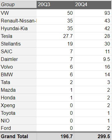 2/ It's visible that the gist is @VWGroup, @Groupe_Renault-@Nissan, @HyundaiEurope-@Kia, @fiat-@Peugeot-@Citroen and @volvocars-@PolestarCars. I've added some margin of error in my calcs, but individually, my best guesses are these.https://twitter.com/fly4dat/status/1311304328691552256?s=20 …