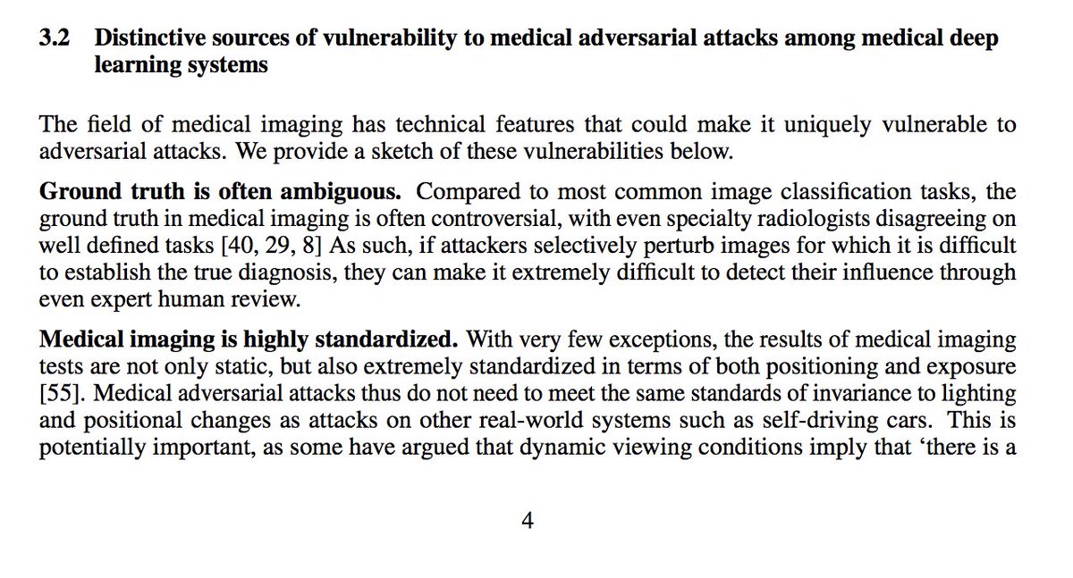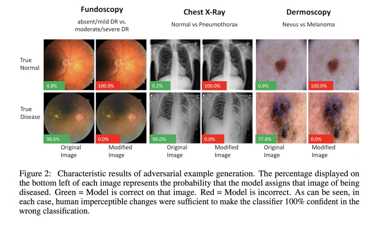 @samfin55,@zakkohane, and I argue that medicine is the perfect storm of incentive + opportunity for adversarial attacks: https://arxiv.org/abs/1804.05296 pic.twitter.com/7Jp70Lm1td