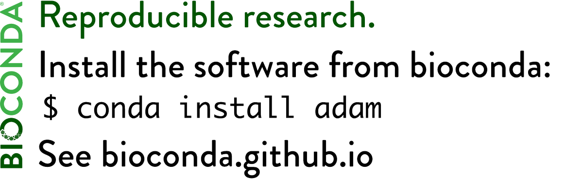 $ conda install adam ADAM version 0.23.0 is available on