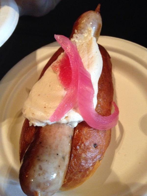 OMG foie gras cream cheese on a mini sausage from @SeaVonTrapps at
