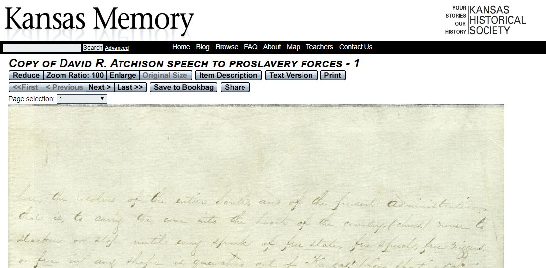 Earl Here is first speech by Southern leader about their flag. 1856. His speech to his hired men. Memorize it. Pleasure yourself with it. He brags flag is red in color -- for color of blood they will spill to spread slavery - to the Pacific. https://www.kansasmemory.org/item/90822 pic.twitter.com/l246byrJTR