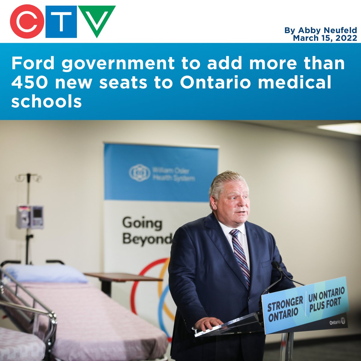 Ontario’s doctors and nurses are the foundation of a strong and sustainable health care system. We need more medical students to build up our health care workforce so that patients can access the care they need and deserve—no matter where they live.pic.twitter.com/XOA58gkPBn