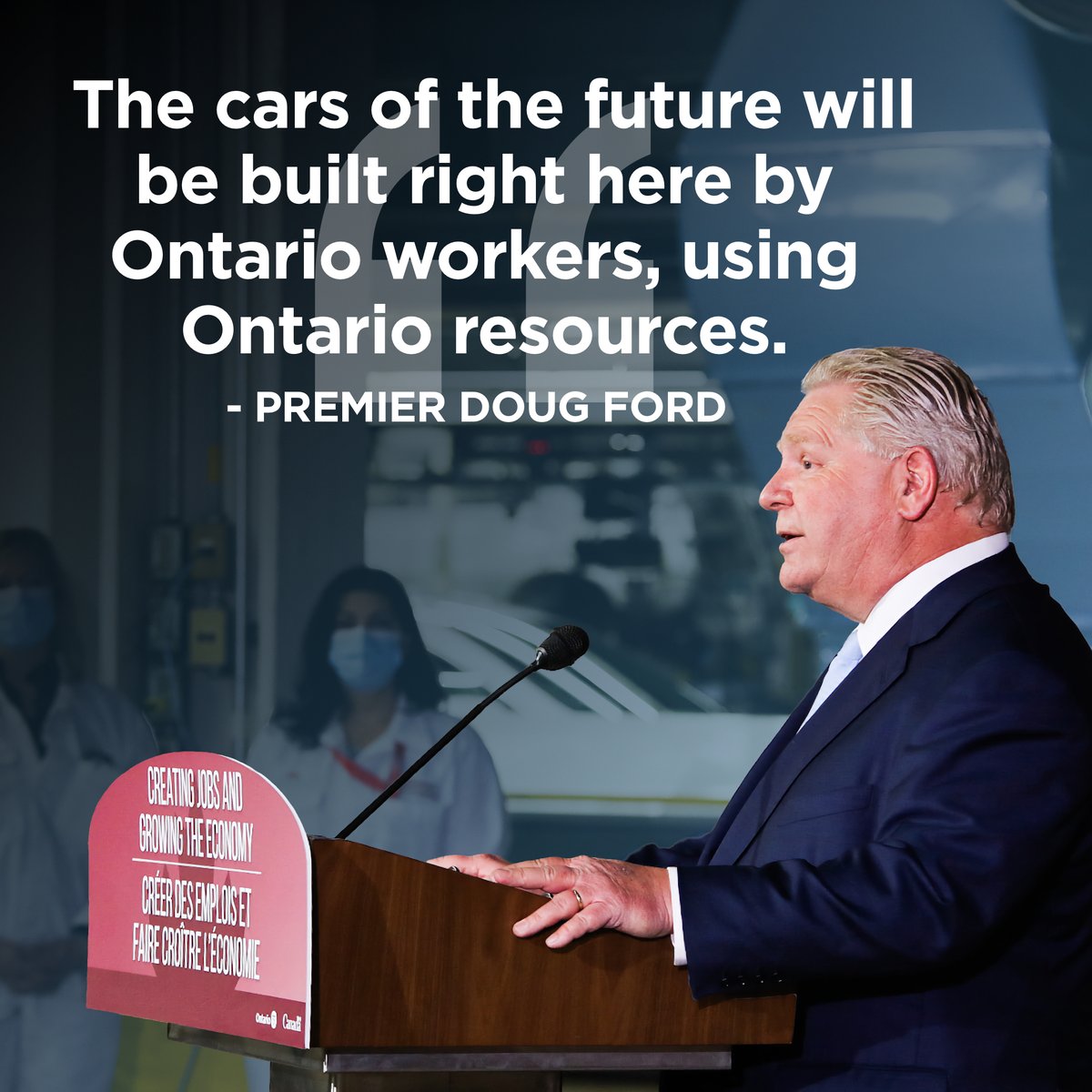 #Ontario. We have a proud history of auto manufacturing, dating back over 100 years. We are making sure that proud tradition will continue for future generations.#OntarioMade#ElectricVehiclespic.twitter.com/SL3QOkKC6S