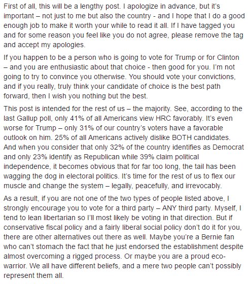 My stepdad's thoughts on the election. It is lengthy but a very well written read. Keep responses respectful!pic.twitter.com/euEm2c8SCT