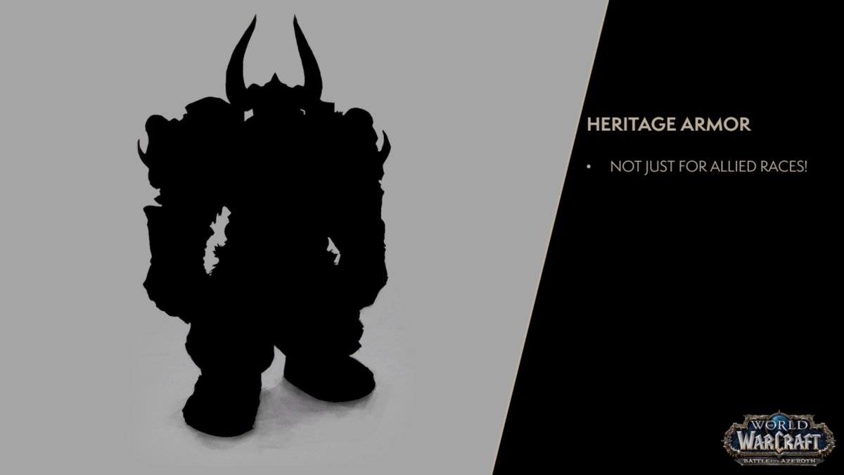 Heritage Armor - not just for Allied Races! Dwarves and Blood Elves will complete quests for Heritage Armor in the next content patch. https://www.wowhead.com/news=287254/liveblog-of-the-upcoming-battle-for-azeroth-content-update-with-ion-hazzikostas …pic.twitter.com/Mf5KvqdiHY