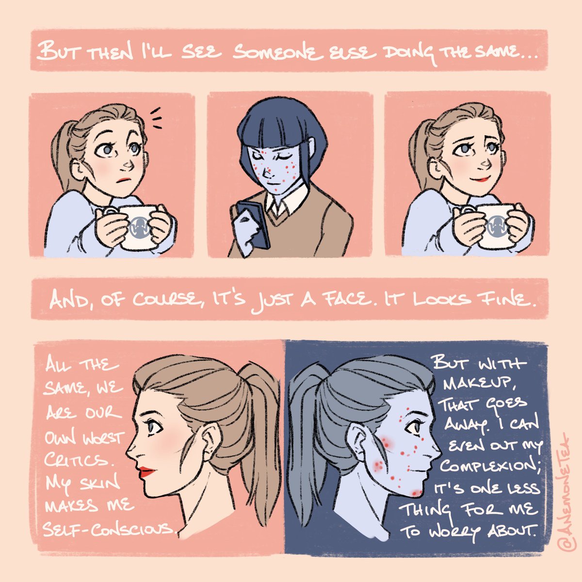 1/3: I’ve been seeing a lot of No Makeup vs. Makeup drama online again lately. It got me thinking - & lo, a (rather personal) comic happened.pic.twitter.com/DA50DCnk0Q
