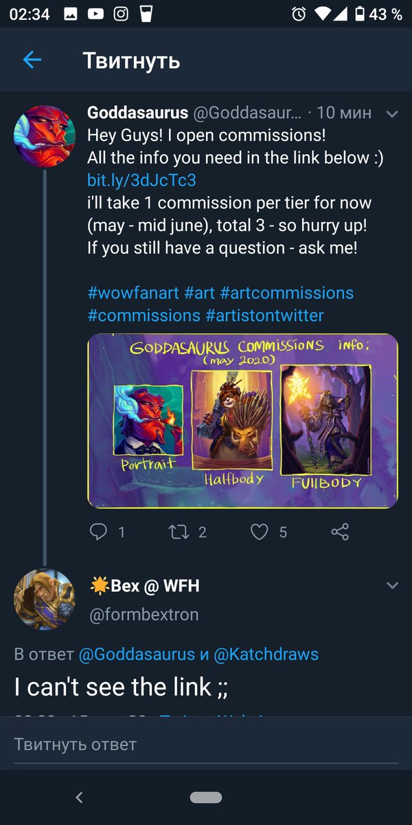 Hey Guys! I open commissions! All the info you need in the link below :) https://bit.ly/3dJcTc3  i'll take 1 commission per tier for now (may - mid june), total 3 - so hurry up! If you still have a question - ask me! #wowfanart #art #artcommissions #commissions #artistontwitterpic.twitter.com/PRjxyTnS9l
