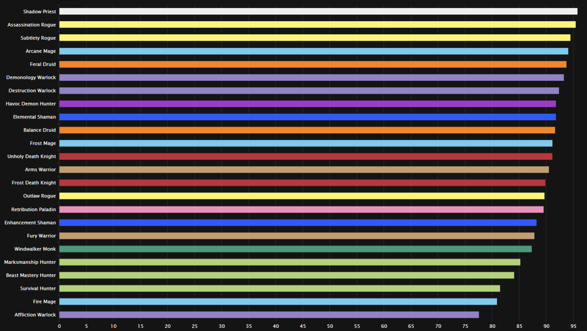 this graph ain’t it. at all. who made this? demonology and destro are equal if not better than all mage specs right now, especially in comparison to fire. arcane mage being in the top is laughable as a sim trap that literally disappears in dmg meters if u take ONE stephttps://twitter.com/anniefuchsia/status/1413807643278315524 …