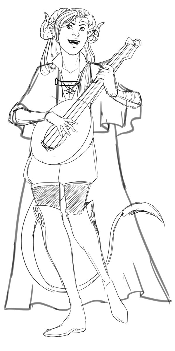 design idea for a DnD character I'd love to play one day, a cute tiefling bard :Dpic.twitter.com/r1YriyKzW2