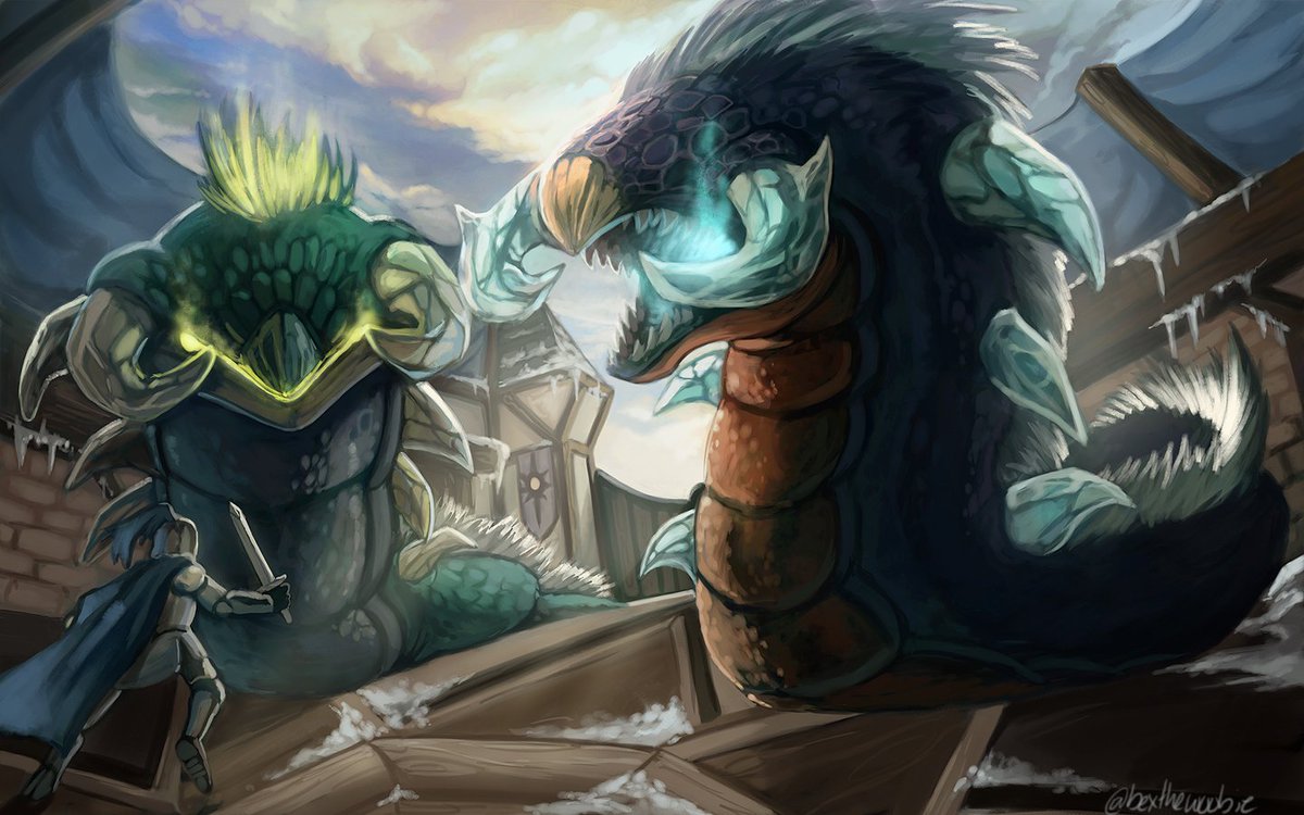 A very exciting commission for @hkeycurrentuser of not one, but two Jormungars! #Warcraft