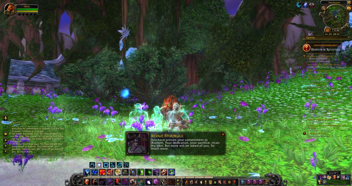 no okay i am genuinely touched by that illidan went to the trouble of conjuring a little spell to show the champion him, tyrande and malfurion in their best days by the well and give them a final message and i just i gotta go lie down my heart can't take this