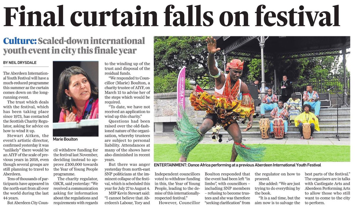 Aberdeen International Youth Festival is to be wound up. Cannot believe that Labour, Tory & Independent councillors voted to withdraw funding in this the Year of Young People, leading to the demise of this internationally respected festivalhttp://www.bbc.co.uk/news/uk-scotland-north-east-orkney-shetland-43518679 …