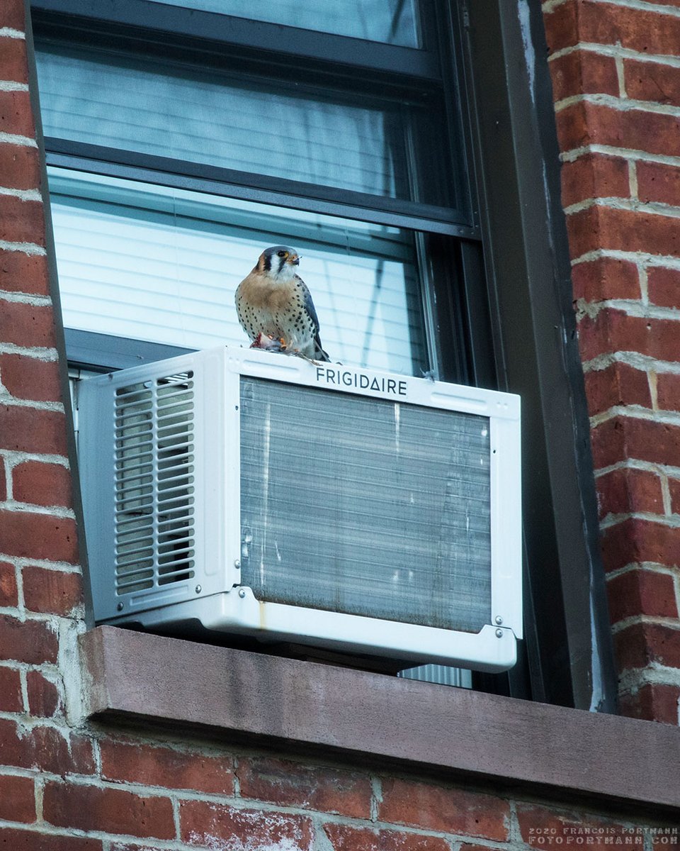 #AmericanKestrel with a prey (probably House Sparrow),#EastVillage NYC tonight, http://fotoportmann.com pic.twitter.com/UgWIc28gH1