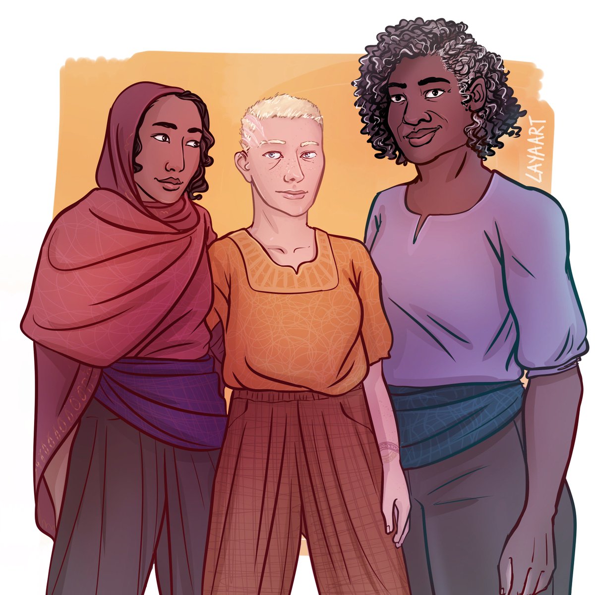 Yena, Safi and Gwen from Manifold Worlds by @fozmeadows !