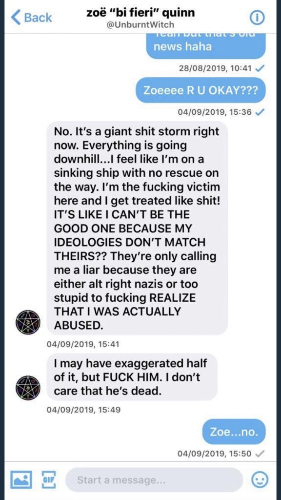 You're accusing the people skeptical of Zoe's credibility of personally sending threats? Also, there's been zero swatting attempts targeting Zoe. She's also never been doxed, the only info known is stuff she made public
