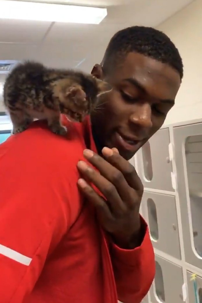I CANNOT HANDLE THE SMOLNESS OF THE KITTEN ON THE LARGENESS OF THE MAN