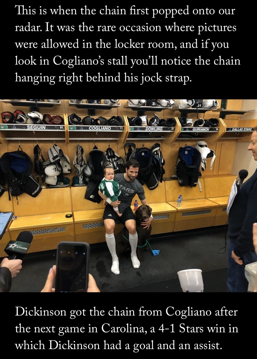 to find out the dallas stars switched this season from a sexy black cowboy hat that someone wears to a CHAIN they just hang up on their stall as their victory token item.... painful and bad.pic.twitter.com/JUdg2JQoqF