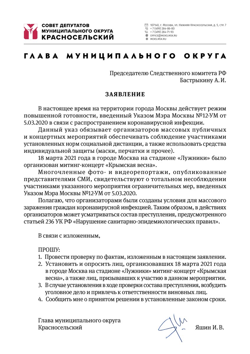 Opposition figure Ilya Yashin asks Russian investigators to bring the same charges against Putin as those slapped against Lyubov Sobol and other Navalny allies for calling for protests.https://twitter.com/IlyaYashin/status/1372825988678172675 …