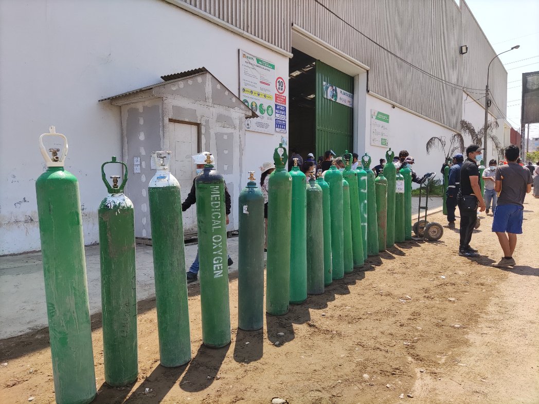 #EleccionesPerú2021 Algunos electores han pasado la mañana en Villa El Salvador llenando cilindros de oxígeno para sus familiares afectados por la covid-19, e irán a votar por la tardepic.twitter.com/Y7SCzdxZAR