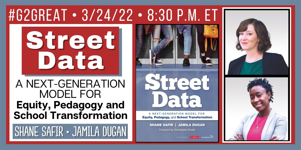 #G2Great welcomes guest hosts Shane Safir & Jamila Dugan. We can’t wait to discuss their incredible new book, Street Data: A Next-Generation Model for Equity, Pedagogy, and School Transformation Please join us!@ShaneSafir@JamilaDugan@CorwinPresspic.twitter.com/NcfGMw966j