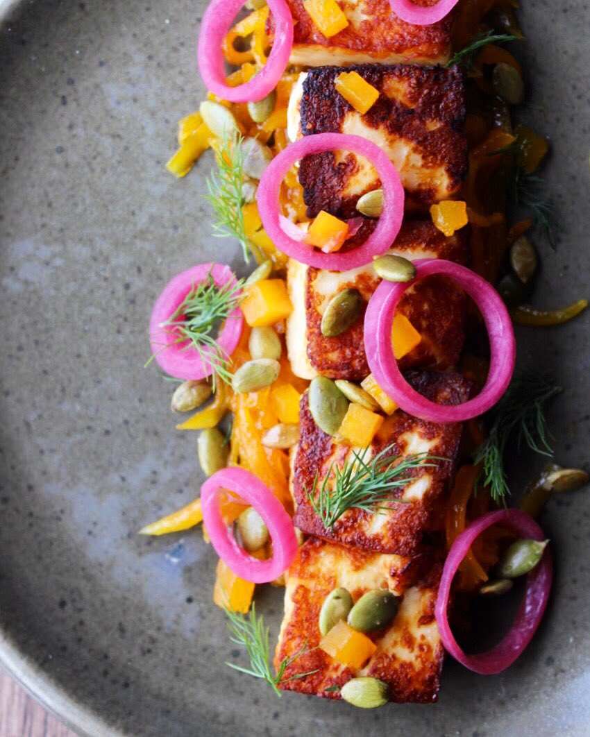 butternut squash marmalade, candied squash, pepitas, pickled onions #shabbatshalom#haloumiislifepic.twitter.com/SwTmMBbtrQ