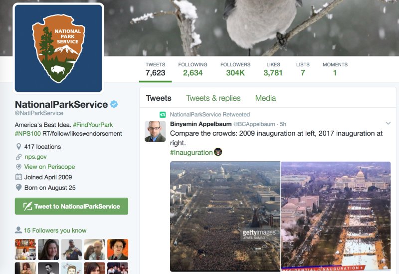 National Park Service banned from tweeting after anti-Trump retweets http://gizmo.do/fuVZeiJ pic.twitter.com/Sn7WMhXTmq