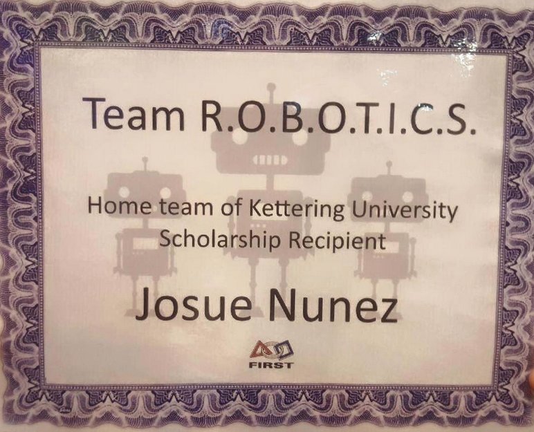 Huge congratulation to Team Member Josue for receiving a scholarship from Kettering University for $22,500!pic.twitter.com/90z2REx0FU