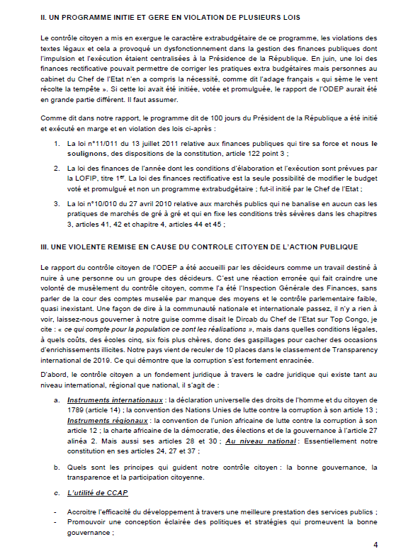 #LeCongopasàvendre Voici les clarifications de l'@odeprdc, observatoire de la dépense public par rapport aux récentes déclarations du directeur de cabinet du chef de l'Etat à propos du budget concernant le programme des 100 jours. En 4 points majeurs, l'Odep apporte son éclairagehttps://twitter.com/odeprdc/status/1222732682922287104 …