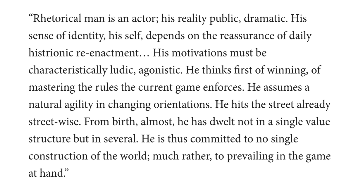 This is how Richard Lanham describes "rhetorical man" in his history of rhetoric... sound familiar? https://unherd.com/2020/02/the-rhetorical-world-of-boris-johnson/ …pic.twitter.com/8KqxvExtJ9