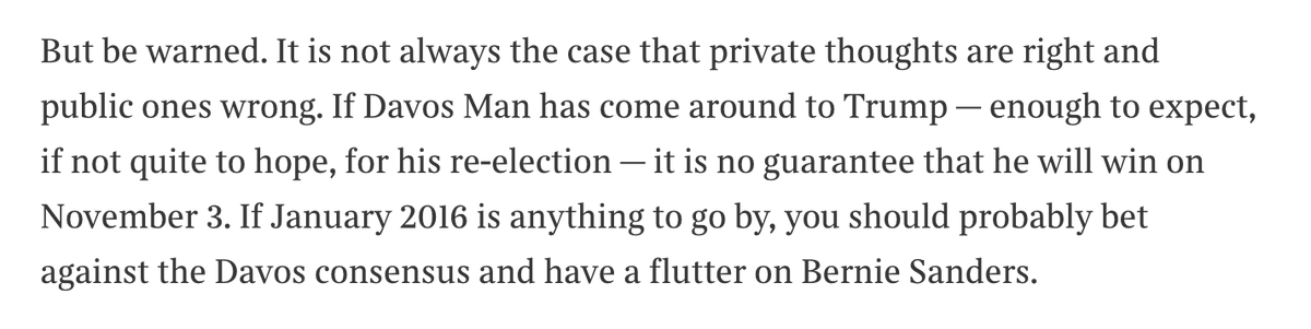 @nfergus column last weekend really stuck with me. If the 'smart set' are all now saying Trump's a shoe-in for re-election, it should give us pause. Betting against their consensus has been a pretty good strategy for the past few years...pic.twitter.com/nGqmKqrScl