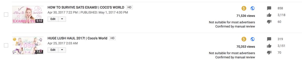 @TeamYouTube how on earth could my sisters videos not be ad friendly? How could this has been manually confirmed? I would like this looked at immediately this is ridiculous.pic.twitter.com/7jhd1seOX4