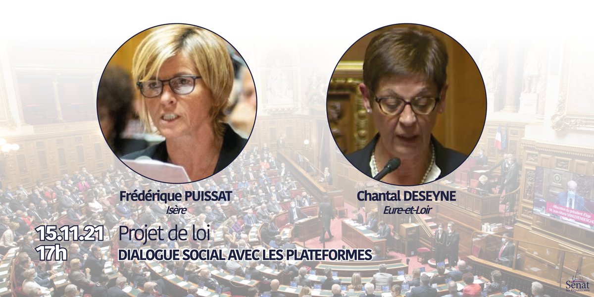 @frederiquep04 et Chantal Deseyne présenteront les enjeux du projet de loi pour un dialogue social avec les#plateformes. A suivre dès 17h.pic.twitter.com/USLzB8EaM9