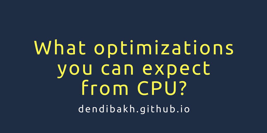 Compilers are known for doing all sorts of cool optimizations. What about your CPUs itself? I wrote a small blog post about it. https://dendibakh.github.io/blog/2018/04/22/What-optimizations-you-can-expect-from-CPU …