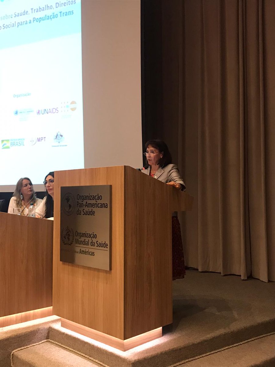 "Espero que hoje e amanhã, possamos discutir com profundidade como podemos garantir o acesso à saúde, efetiva equidade de gênero, e a inserção no mercado de trabalho das pessoas trans", Sra. Astrid Bant, representante do