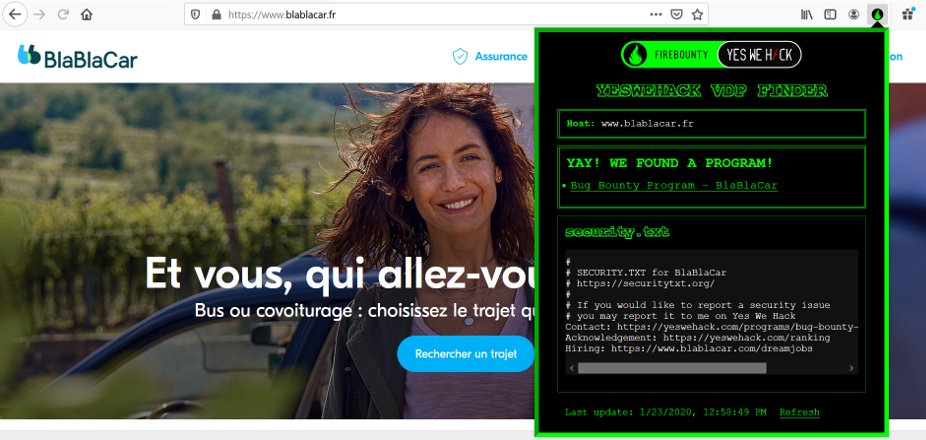 @yeswehack! If you find a security issue on a website, this plugin can automatically help you to find if they have a VDP or something like that to report the vulnerability!