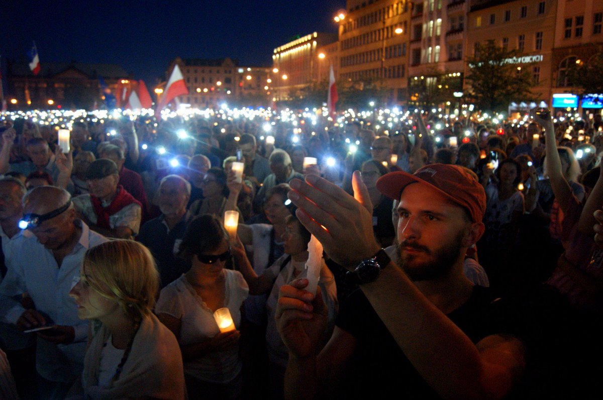 Resistance to illiberal democracy spreads all over Poland. Breathtaking Poznan tonight. by