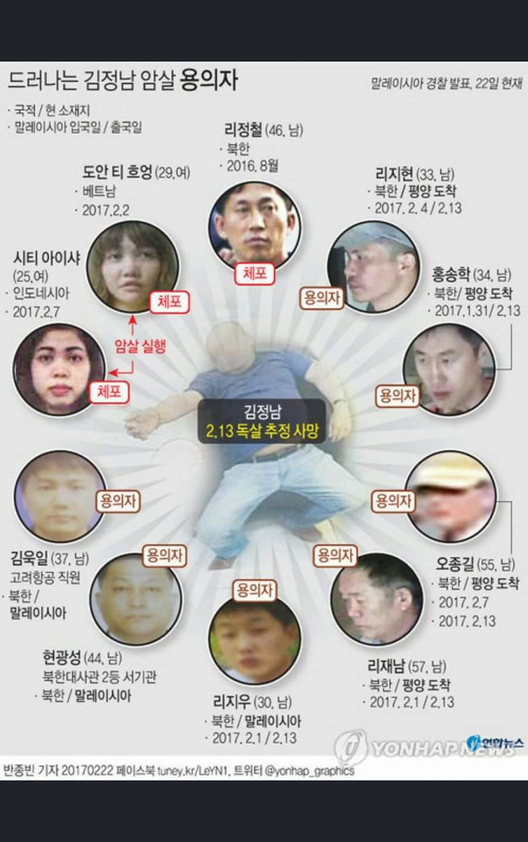 김정남 피살에 동원된 인력들. 살인마 정권의 몰락이 다가온다 pic.twitter.com/WrROlLeSgO