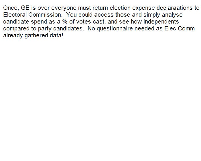 Will anyone assess votes cast as % of £ spent?