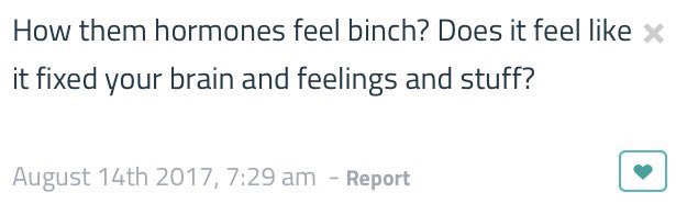 hahahaha fuck no. I went from 'depressed weirdo' to 'depressed weirdo with tits'. Might be the dosage but they keep cancelling appointmentspic.twitter.com/Ubnp0hIFVN