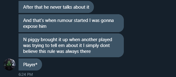 Later, Dr. Piggy reaches out to Ally about his ban and “another relationship” under the Romeo and Juliet Clause. Dr. Piggy also mentions the CoC did not investigate Ally's ban [7/10]pic.twitter.com/jxfnepSgq1